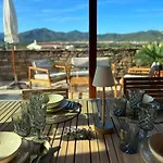 Questa villa offre viste sulla spiaggia sulle montagne da una terrazza. Il bagno comprende anche un bagno con WC separato e una doccia. Inoltre troverai asciugacapelli.